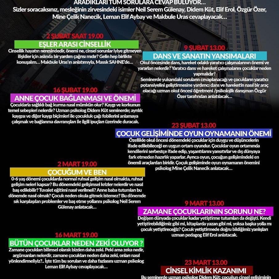 Mask Sahne Maslak’ta gönülü uzmanlarımız tarafından çeşitli başlıklarla seminerler düzenlendi.